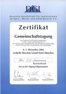 - Gemeinschaftstagung Deutsche Gesellschaft für Implantologie im Zahn-, Mund-, Kieferbereich, 04.-07.12.2002