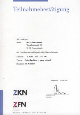 - Endo Revision ganz einfach, Referent: Dr. Cramer, 18.10.2002