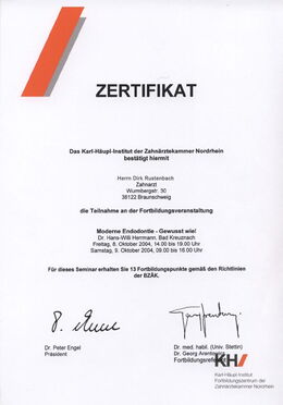 - Moderne Endodontie, gewusst wie, Referent: Dr. Hans-Willi Hermann, 08./09.10.2004, Düsseldorf