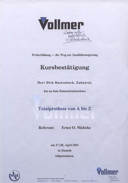 - Totalprothesen von A-Z, Referent: Ernst O. Mahnke, 27./28.04.2001