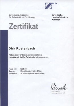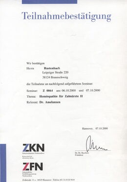 - Homöopathie für Zahnärzte II, Referent: Dr. Hans-Lothar Ameluxen, 06.10.2000