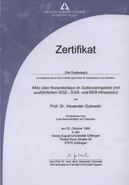 - Alles über Keramik-Inlays im Seitenzahnbereich, Referent: Prof. Dr. Alexander Gutowski, 02.10.1999, Göttingen