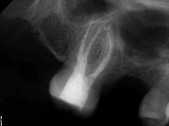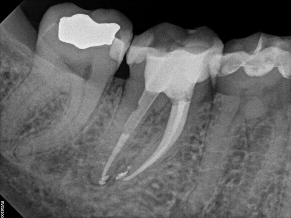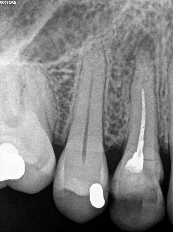 Leider auch hier ein weiterer Kanal und die Vervollständigung der Wurzelbehandlung.